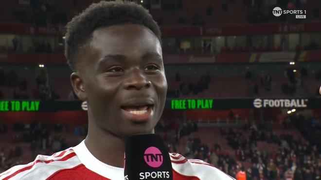 在英超第16轮主场2-1击败狼队之后,阿森纳前锋萨卡接受了来自TNT体育的采访。