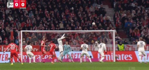 第45+2分钟,小红书丨伯温开出任意球,波图尔斯基头球破门,美因茨1-1拜仁